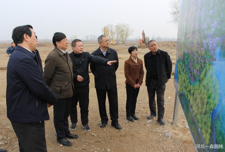 河北省林業廳廳長周金中同志在石家莊市林業局局長楊建秋、元氏縣委書記鄭巍、一森園林董事長耿軍林的陪同下到萬花山森林公園一森園林植樹造林基地視察指導工作。