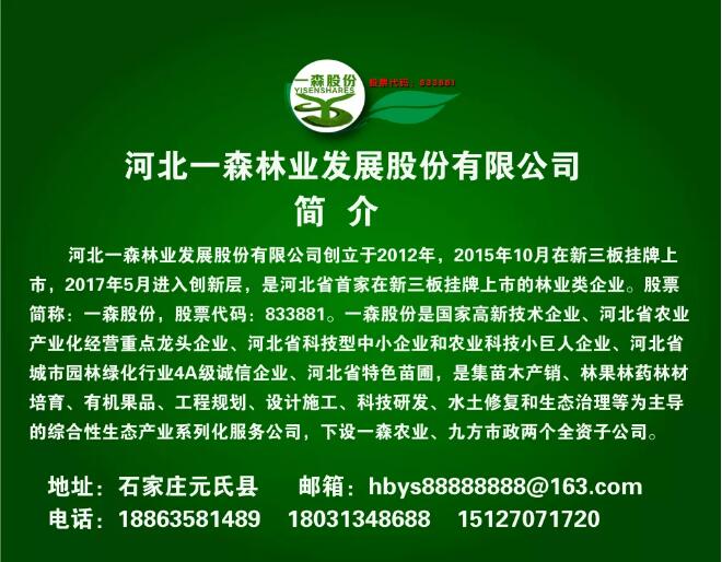 2020年9月4日保定市林木種苗協會會長李紅印帶領協會成員40余人來到一森股份公司苗木基地參觀考察合作洽談,一森股份公司董事長耿軍林熱情接待了大家,歡迎各位會員的到來。烈日當頭,會員們興致勃勃參觀一森大白蠟精品基地、標準化國槐基地和一森股份的發源地(現為一森股份科技研發基地)。洽談會上會員們一致對一森股份規模化、標準化的基地管理點贊,他們說一森的絨毛大白蠟從規格 、品質 、數量在中國苗木界都是屈指可數的優秀,希望苗木人有機會都來一森基地參觀考察。會員們各抒己見,發表自己的看法,也對一森股份的苗木基地提出了建議,會上一森股份銷售部經理耿曉燕為大家介紹了一森公司的苗木品種、規格、數量以及公司發展史,她表示感謝李紅印會長以及各位會員的到來,一森股份愿和大家一起合作共贏,共謀發展。