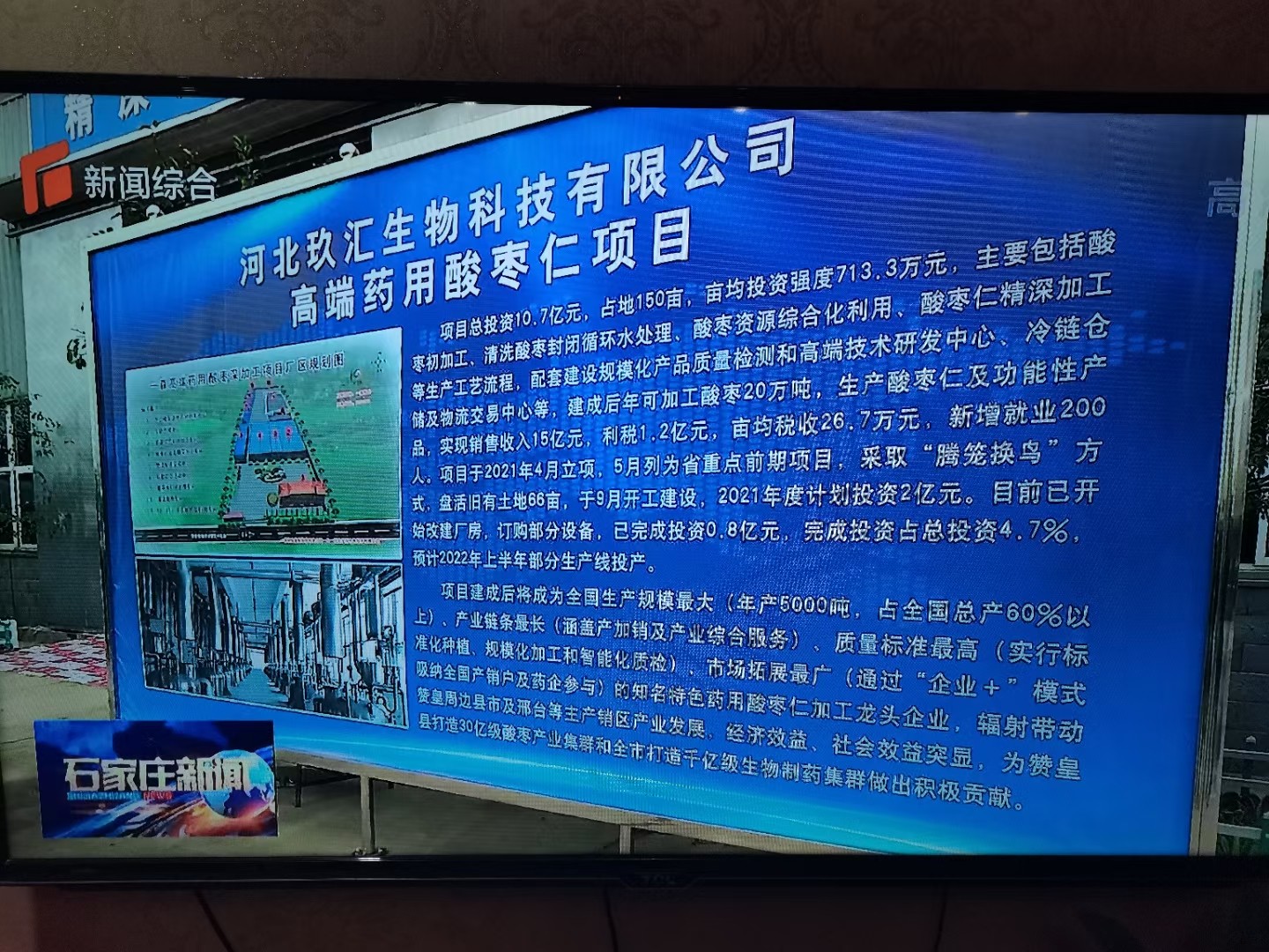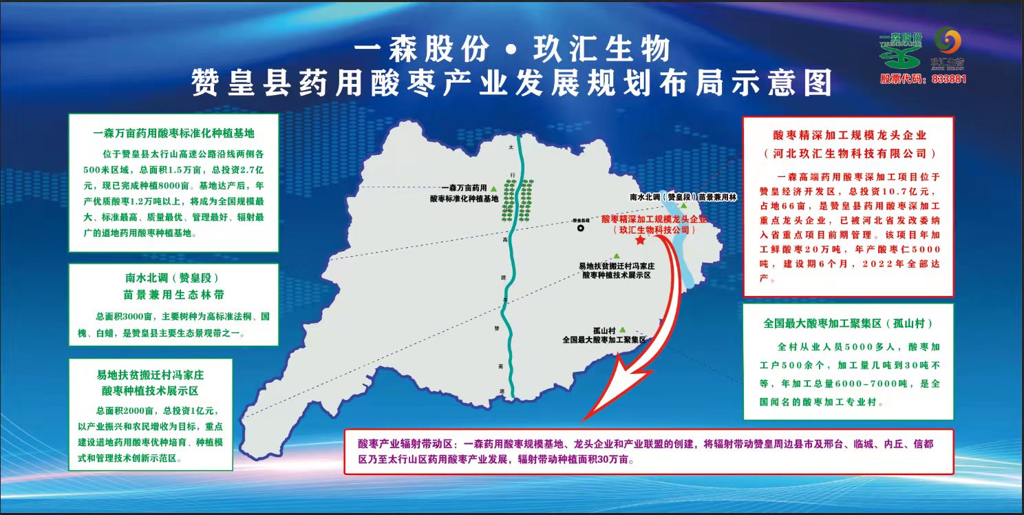 在項(xiàng)目現(xiàn)場(chǎng),一森股份公司董事長耿軍林匯報(bào)了一森高端藥用酸棗精深加工項(xiàng)目建設(shè)進(jìn)展情況,一森高端藥用酸棗深加工項(xiàng)目總投資10.7億元,兩期預(yù)計(jì)占地150畝,主要包括酸棗初加工、清洗酸棗封閉循環(huán)水處理、酸棗資源綜合化利用、酸棗仁精深加工等生產(chǎn)工藝流程,配套建設(shè)規(guī)模化產(chǎn)品質(zhì)量檢測(cè)和高端技術(shù)研發(fā)中心、冷鏈倉儲(chǔ)及物流交易中心等,建成后年可加工酸棗20萬噸,生產(chǎn)酸棗仁及功能性產(chǎn)品,實(shí)現(xiàn)銷售收入15億元,利稅1.2億元,畝均稅收26.7萬元,新增就業(yè)500人。項(xiàng)目于2021年4月立項(xiàng),5月列為省重點(diǎn)前期項(xiàng)目,采取“騰籠換鳥”方式,盤活舊有土地66畝,于9月開工建設(shè)。目前已開始改建廠房,訂購部分設(shè)備,預(yù)計(jì)2022年上半年部分生產(chǎn)線投產(chǎn)。項(xiàng)目建成后將成為全國生產(chǎn)規(guī)模最大(年產(chǎn)5000噸,占全國總產(chǎn)60%以上)、產(chǎn)業(yè)鏈條最長(涵蓋產(chǎn)加銷及產(chǎn)業(yè)綜合服務(wù))、質(zhì)量標(biāo)準(zhǔn)最高(實(shí)行標(biāo)準(zhǔn)化種植、規(guī)模化加工和智能化質(zhì)檢)、輻射能力最強(qiáng)(能夠帶動(dòng)贊皇周邊縣市及邢臺(tái)等主產(chǎn)銷區(qū)產(chǎn)業(yè)發(fā)展)、市場(chǎng)拓展最廣(通過“企業(yè)+”模式吸納全國產(chǎn)銷戶及藥企參與)、綜合效益最好(實(shí)現(xiàn)種植、初加工、精深加工、資源綜合利用效益疊加,并帶動(dòng)相關(guān)產(chǎn)業(yè)發(fā)展,社會(huì)效益凸顯)的知名特色藥用酸棗加工龍頭企業(yè),為贊皇縣打造30億級(jí)酸棗產(chǎn)業(yè)集群和全市打造千億級(jí)生物制藥集群做出積極貢獻(xiàn)。